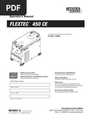 Lincoln Flextec 450 Operator S Manual Im10062 A For Sale Online