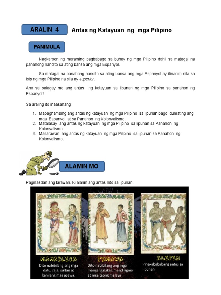 Antas Ng Katayuan Ng Mga Pilipino Sa Lipunan Lm